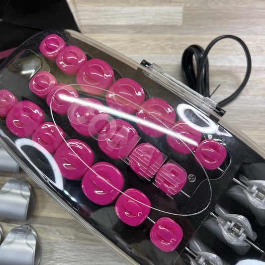 Conair Hot Clips 20 Curlers Flocked Velvet Hair Pink Set Barely Used - JL365