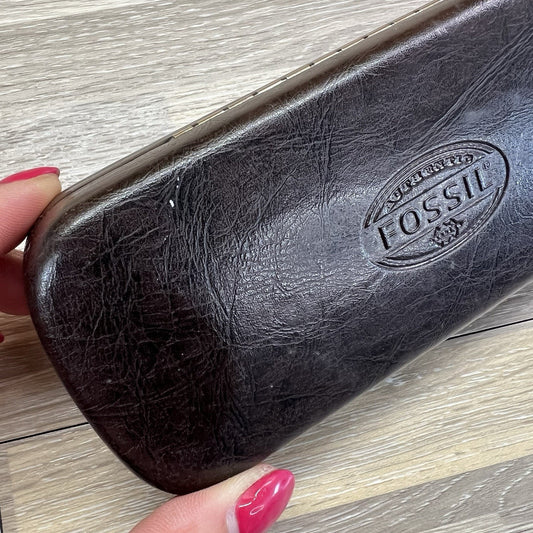 Fossil Sunglasses Case Brown Clamshell Hard Case Eyeglasses - JL490