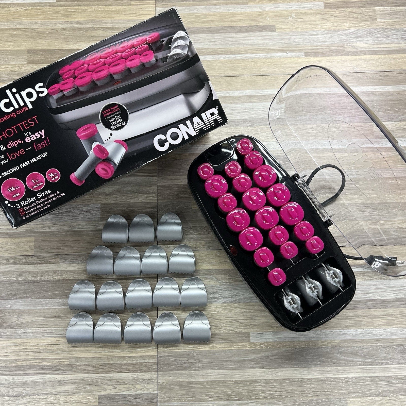 Conair Hot Clips 20 Curlers Flocked Velvet Hair Pink Set Barely Used - JL365