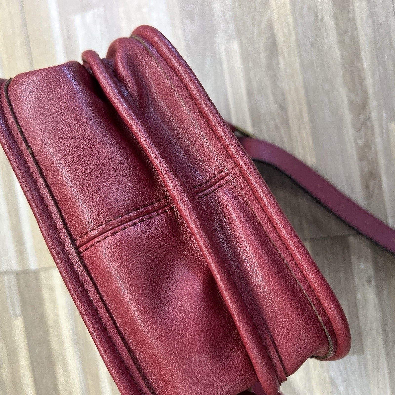 Frye and Co Handbag Crossbody Purse Maroon Vegan Leather - JL374
