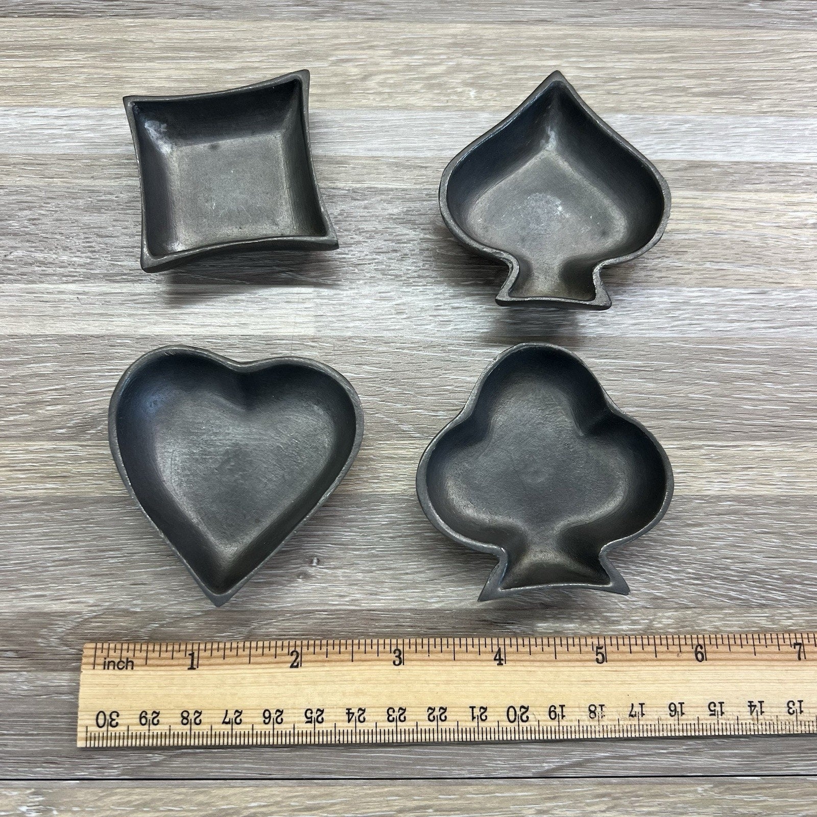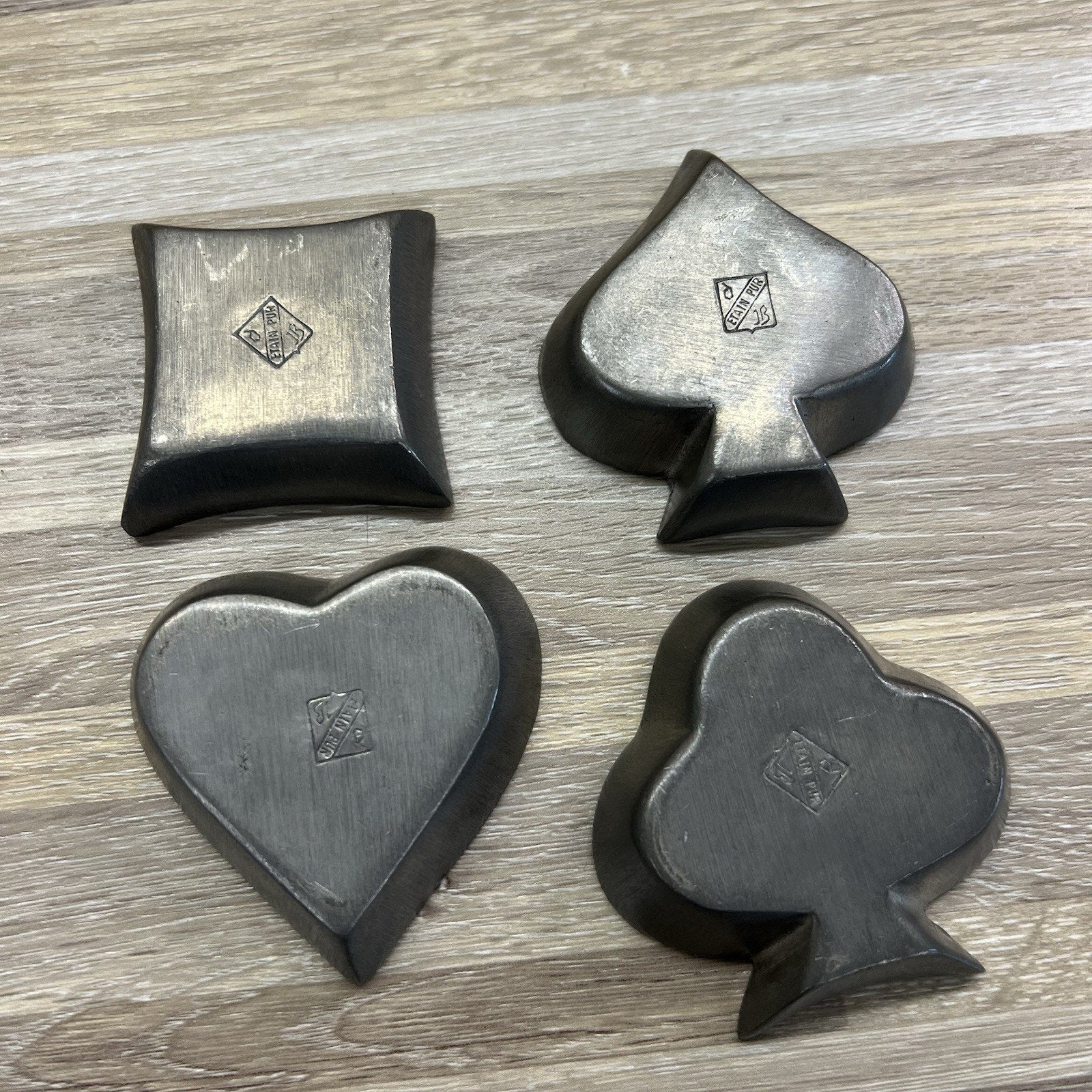 VTG Etain Pur Pewter Cards Suits Mini Ash Trays Hearts Clubs Diamond Spade 6N682