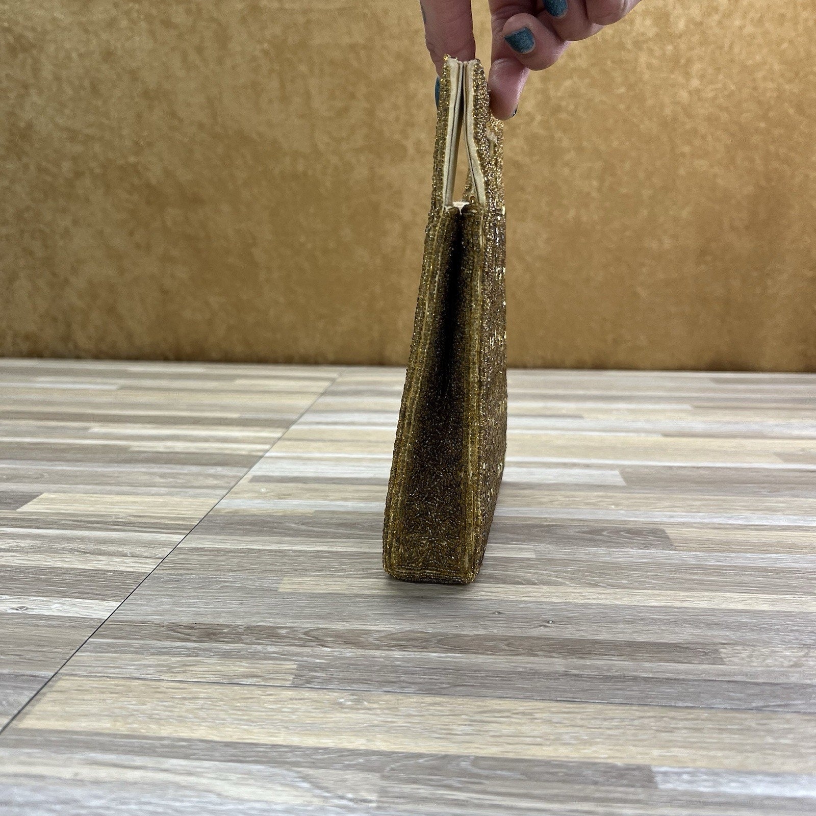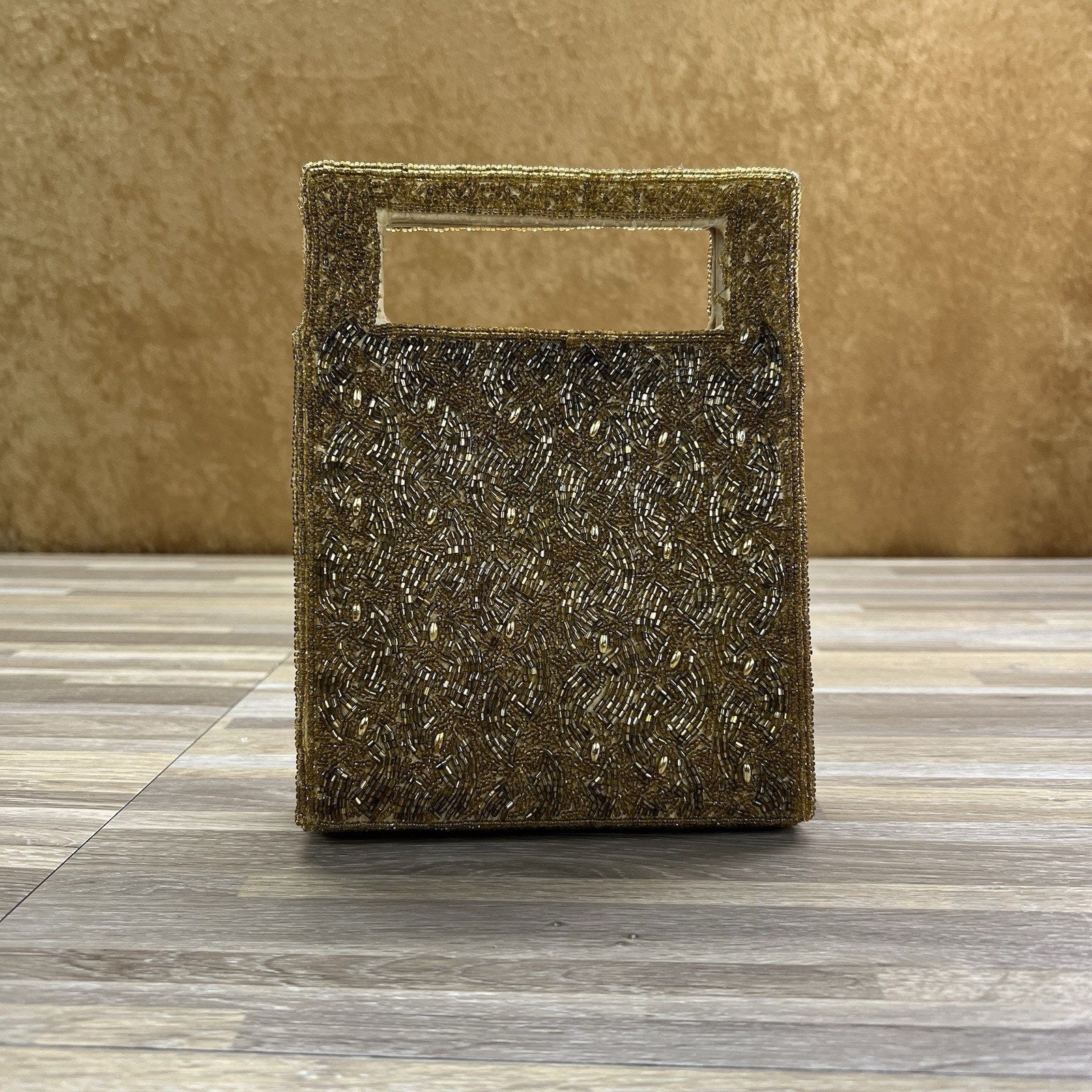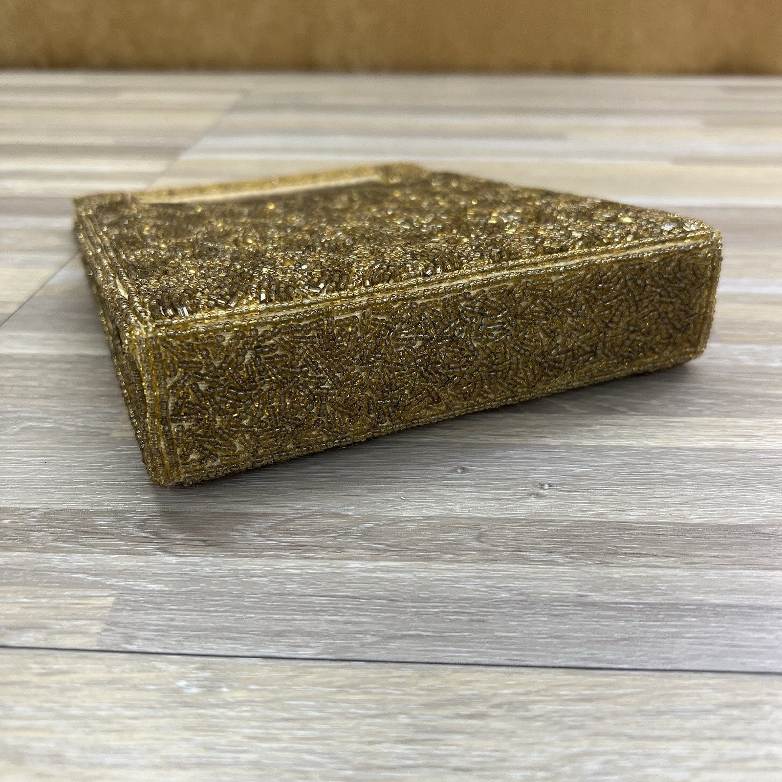 VTG Inge Christopher Indolink Gold Beaded Evening Bag Purse Clutch - 8S569